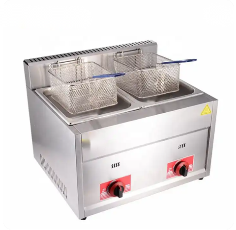 新デザイン卓上オイルフライヤー大容量ステンレス鋼LPGディープフライヤーバスケット付きレストラン設備