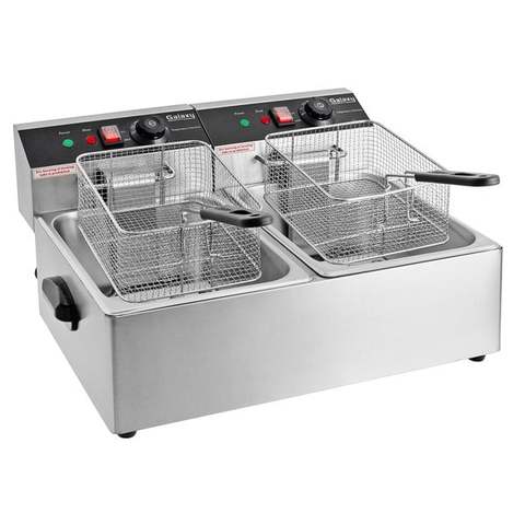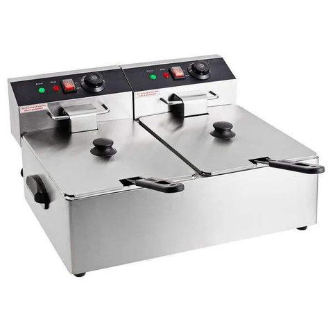 ダブルヘッドダブルタンク12L卓上チキンフライヤーディープフライヤーチップ用商用バスケット付き