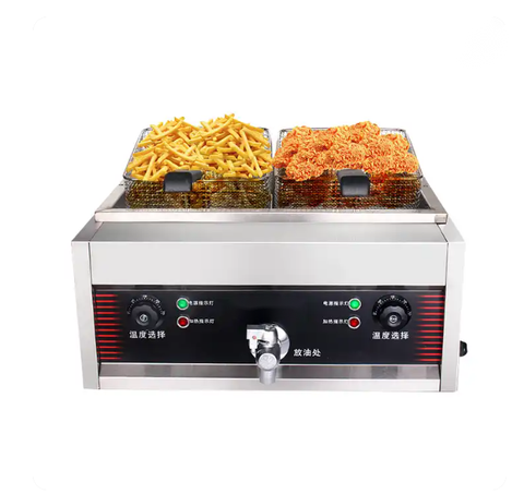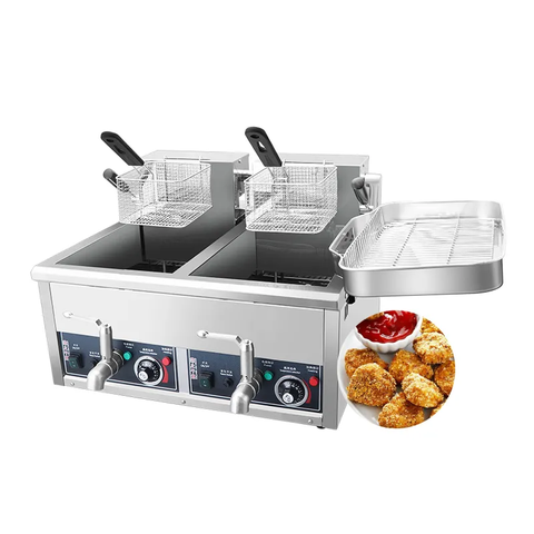 業務用デュアルディープフライヤー26Lフライドチキンとフライドポテト揚げ物機オイルタップファーストフード調理器具